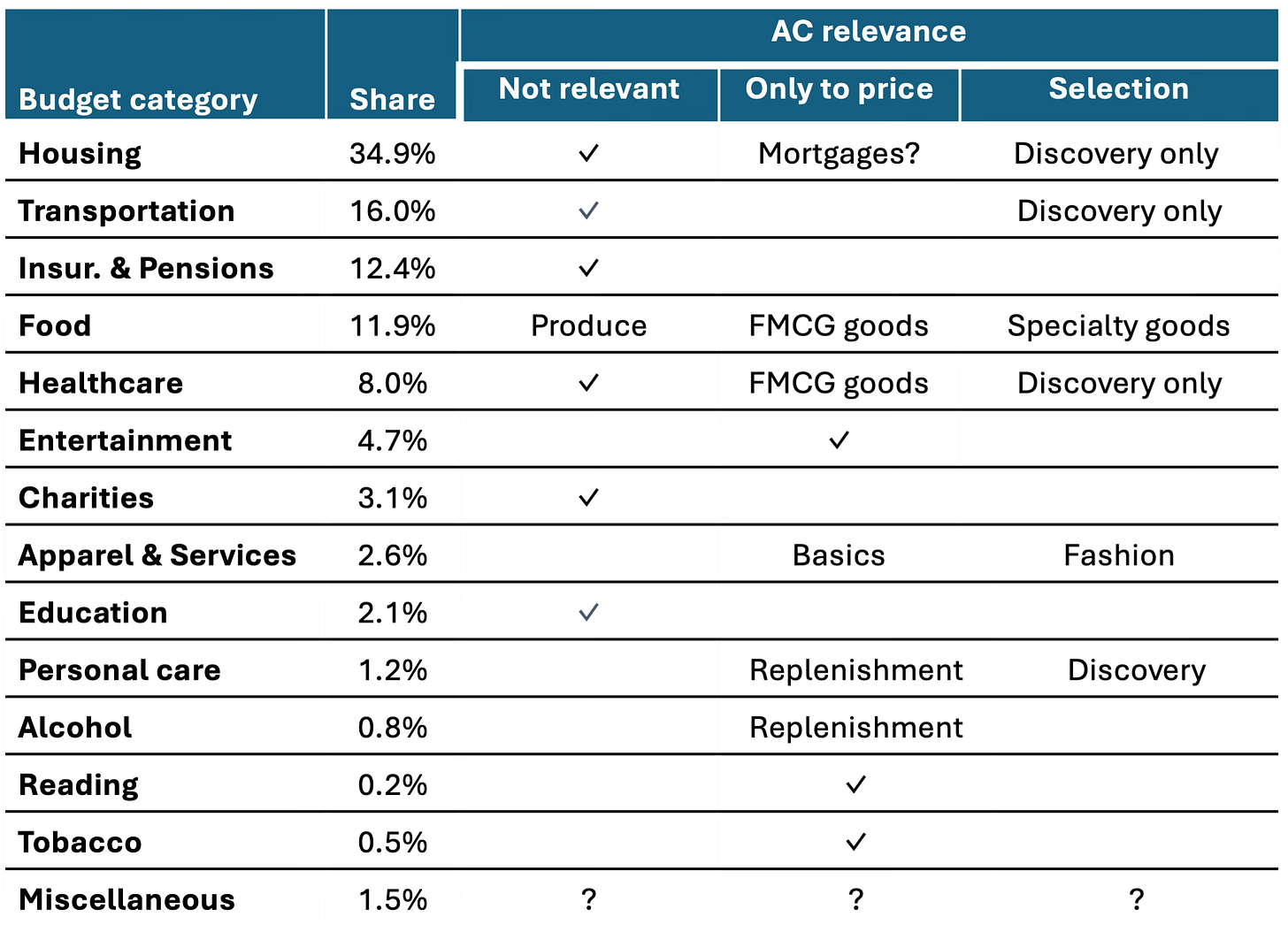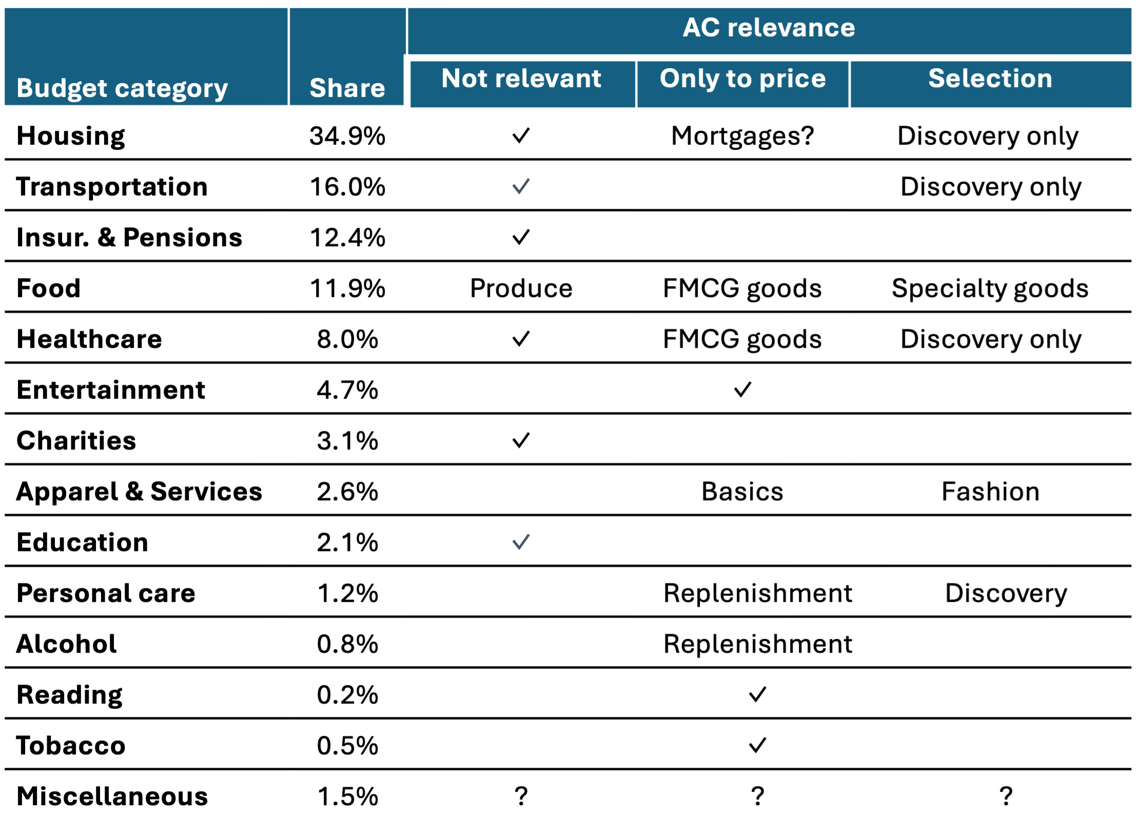 A small fraction of consumer spend is amenable to autonomous AC journeys