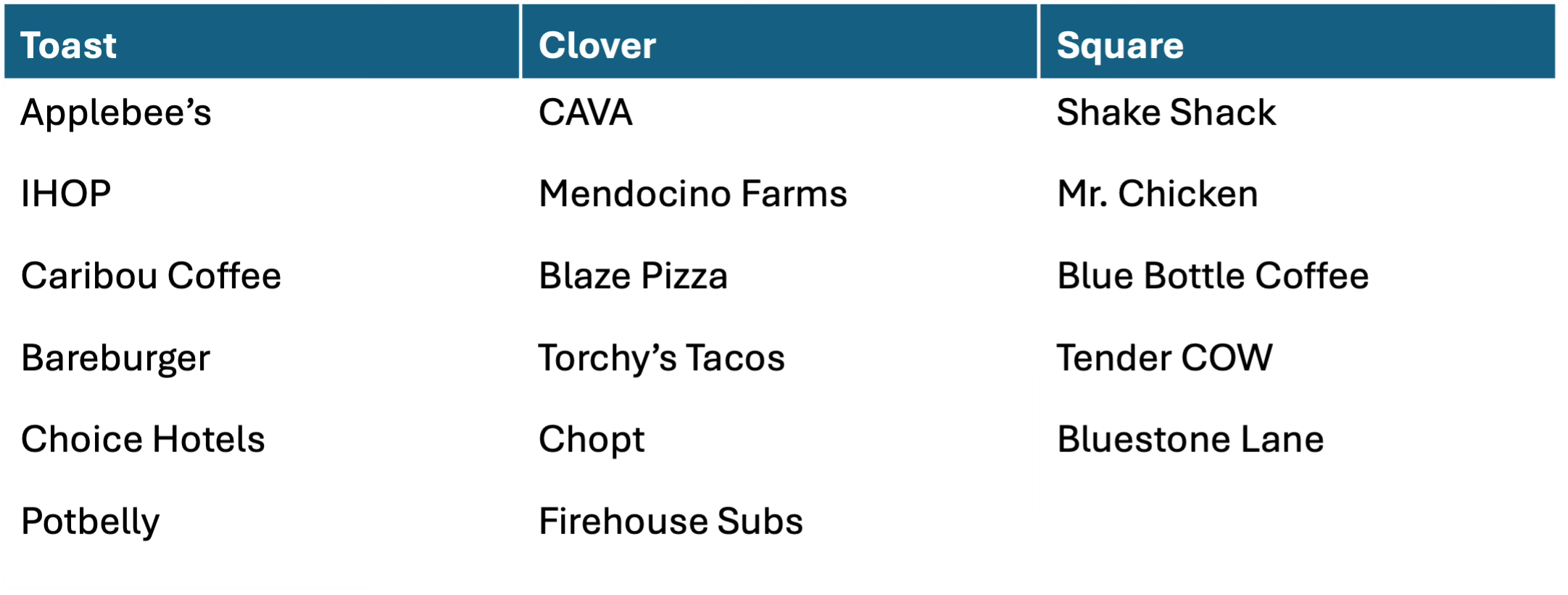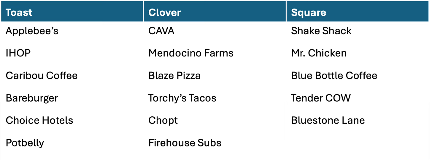 You can see that Toast, Clover, & Square initially focused on the single location cells; Toast expanded out from the Full-Service box and the others from the “Small” segment.