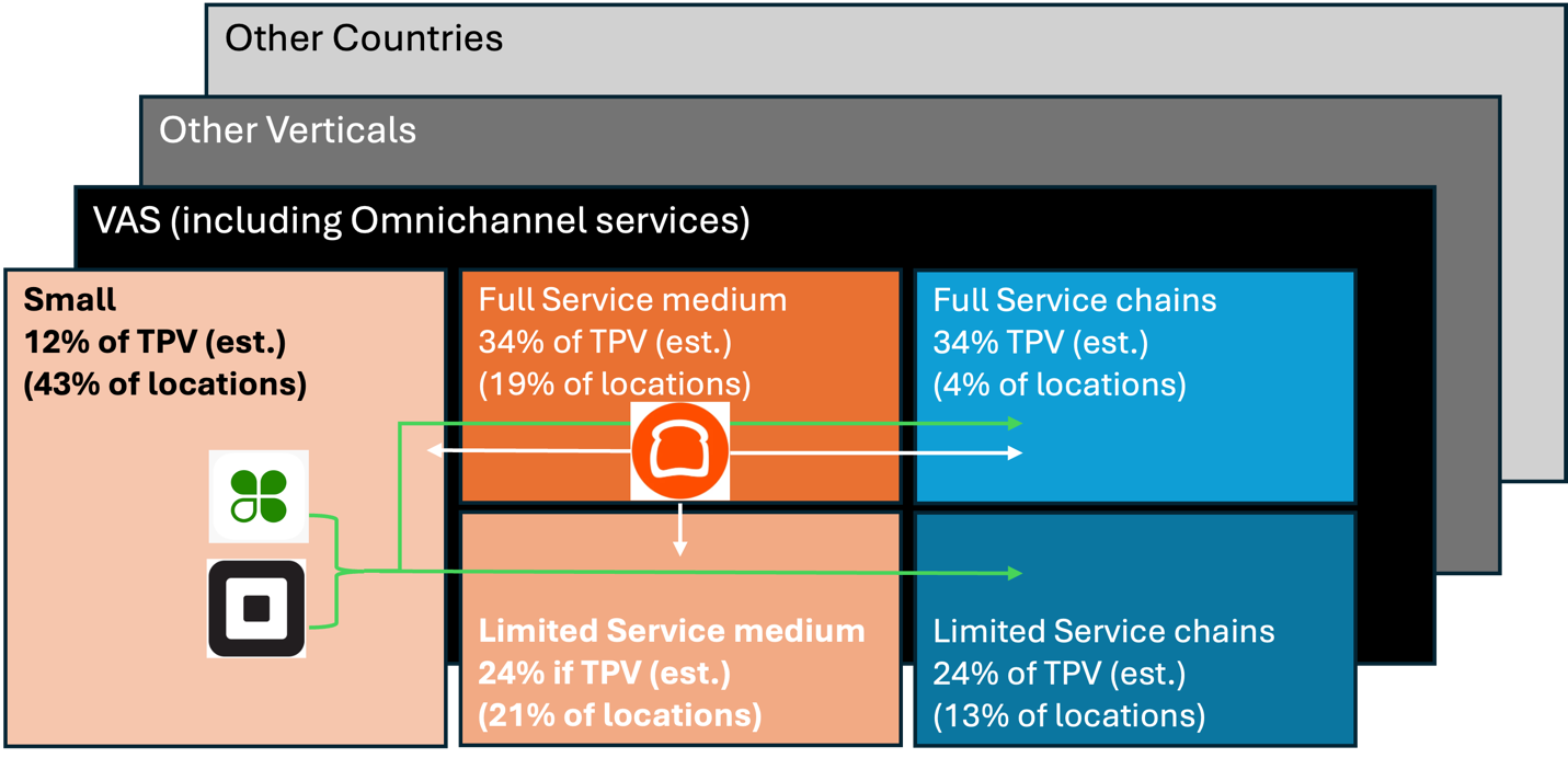 It's indeed a competitive market, and Square, GPN and Fiserv are all re-focusing on hospitality specifically, so the competition should increase (if they can execute). This should lead to a shrinking TAM for each or alternatively slower sales cycles/lower prices... However, like you mentioned they're still trying to catch up on feature parity with Toast/Shift4 and due to their newer stack they should be able to stay ahead with AI features and newer value add.