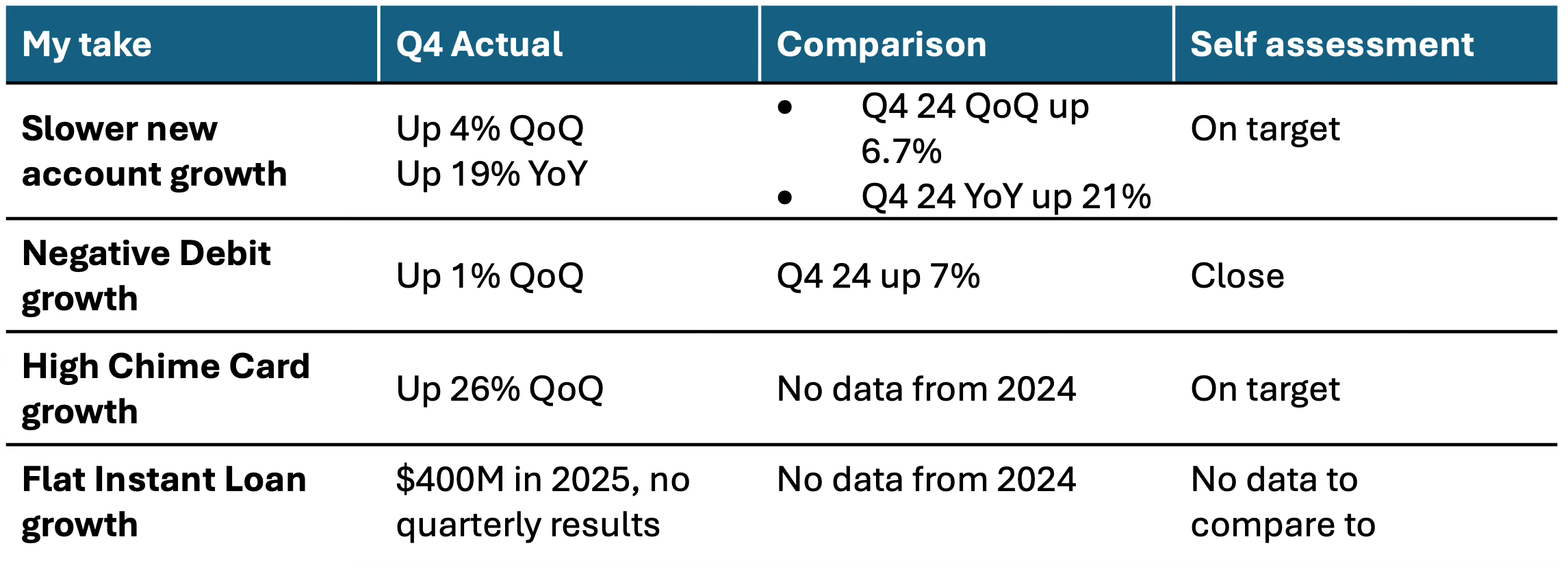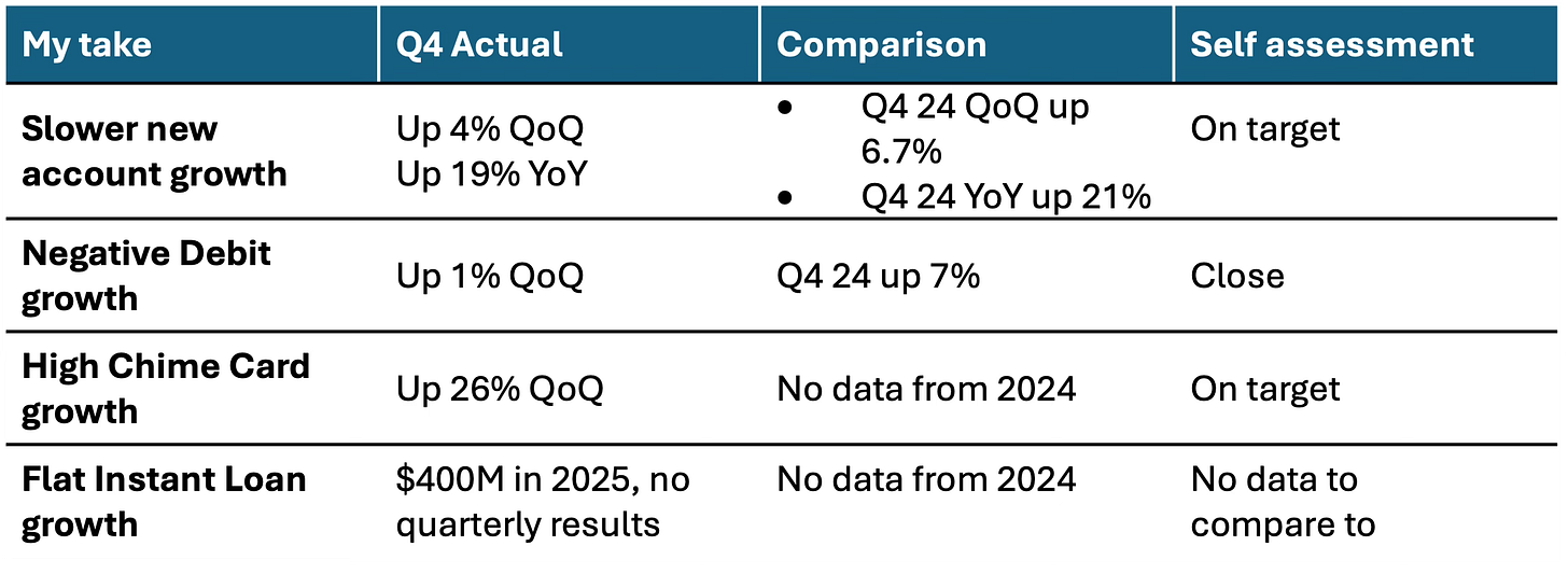 Chime’s Q4 earnings showed revenue growth that was directionally in line with my estimates a few week ago (based on BIN-sponsor data)