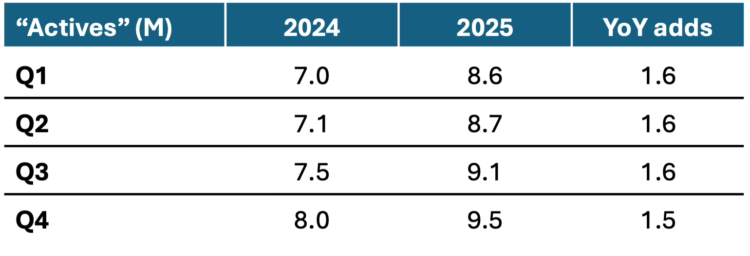 Something odd is going on here. Active Member growth followed the same pattern as 2024 and added almost identical numbers of Active Members.