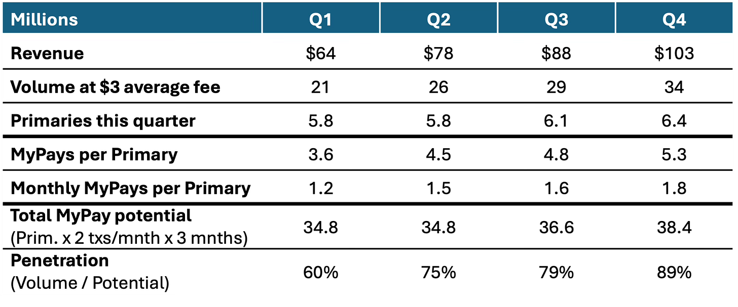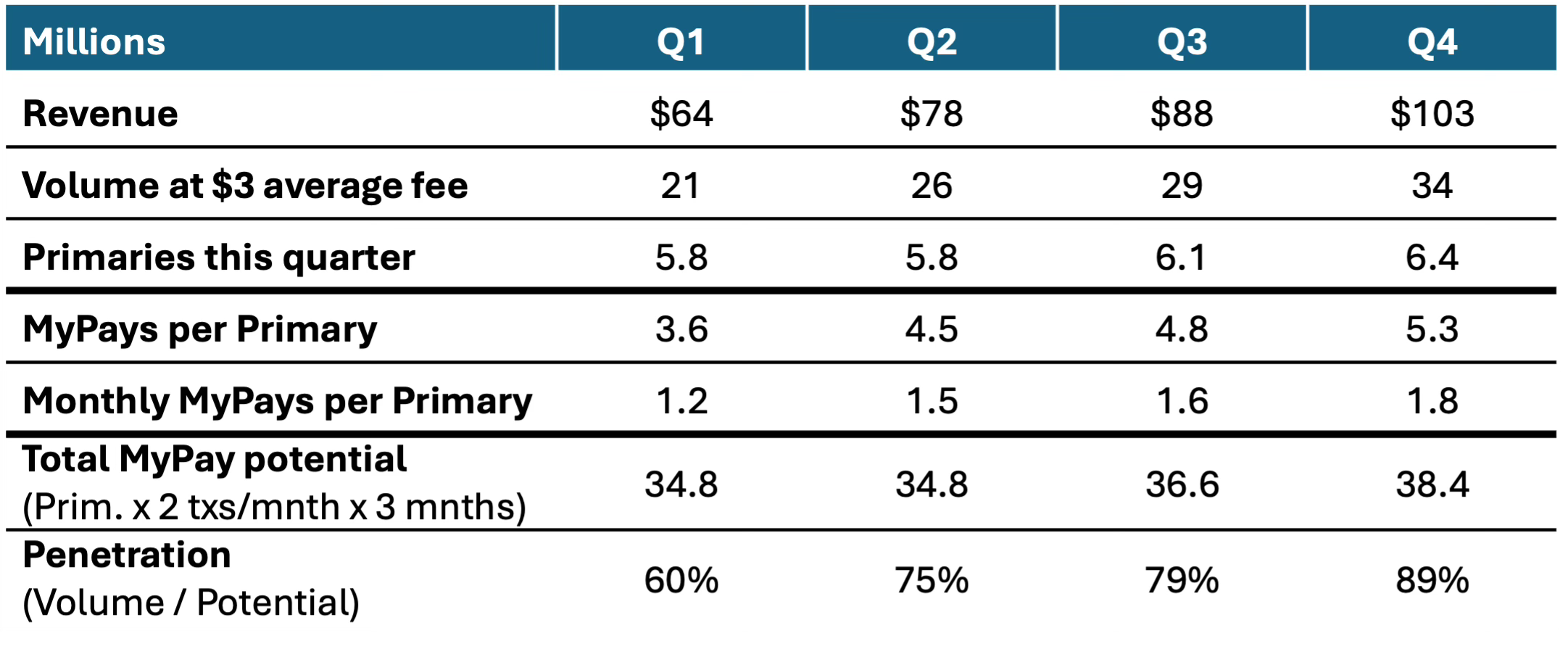 MyPay was only introduced in 2024, making these estimated penetration rates remarkable. Congratulations are due. I am a believer in products like EWA and BNPL that provide modest credit to low-FICO borrowers at zero interest. I am flummoxed that some activists oppose them.